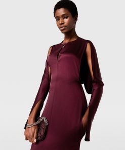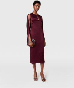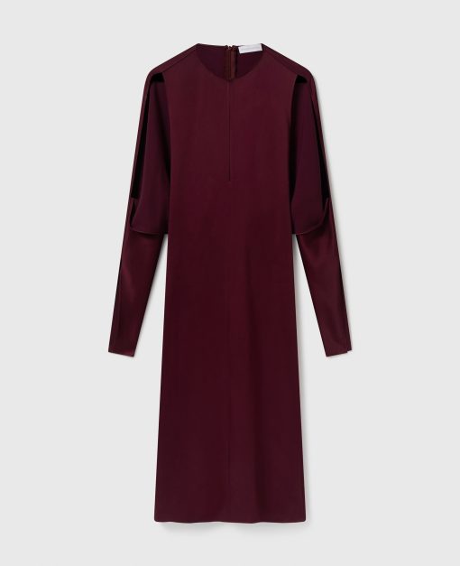 Spun from lustrous, forest-friendly viscose satin, this silky-smooth dress begins with a neat, round neckline. Made by artisans in Italy, it’s expertly sliced at the chest and shoulders to create a striking, architectural silhouette with cape sleeves.