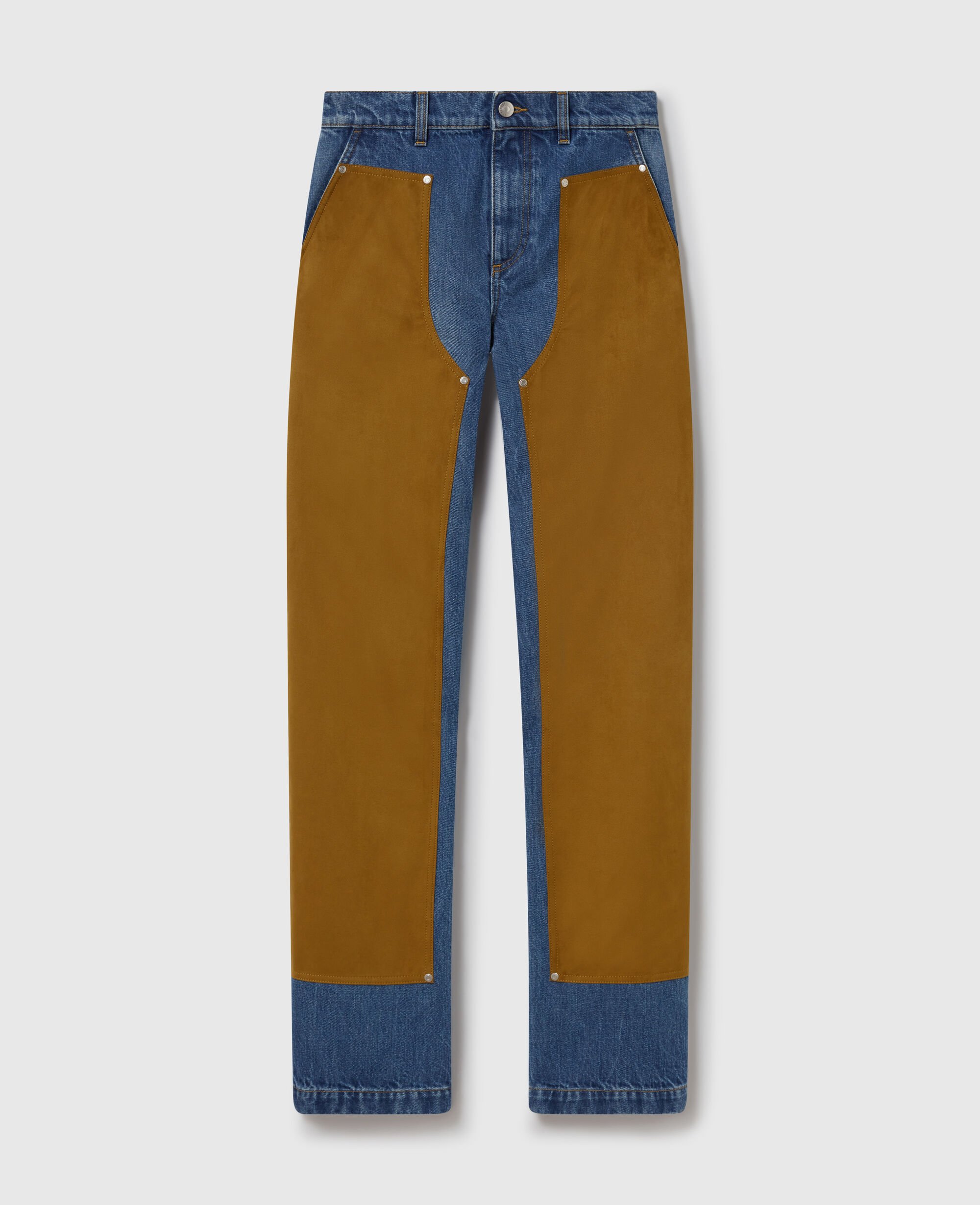 These denim chaps are the latest iteration of an iconic Stella McCartney silhouette. Crafted from organic cotton, it features panels of our soft, vegan alternative to suede with hand-placed silver studs hardware. Each is finished with a relaxed fit and classic vintage wash.