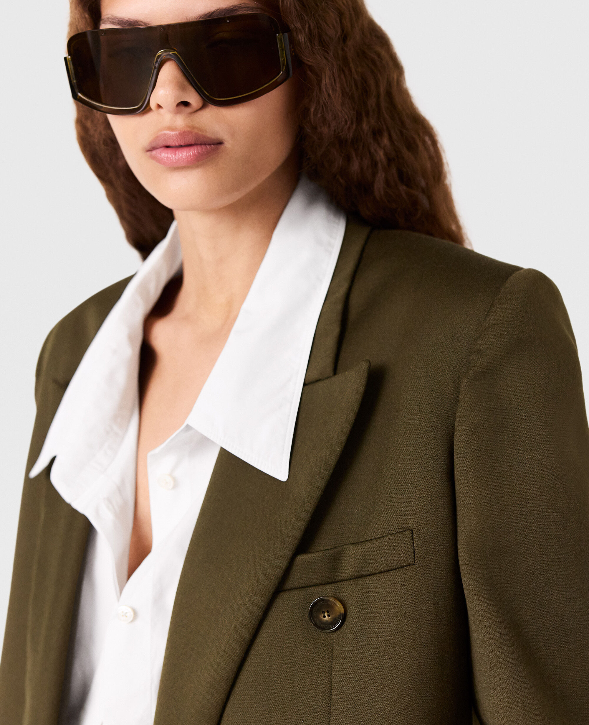 Savile Row tailoring is foundational to the Stella Corp wardrobe, embodying Stella McCartney’s signature masculine-yet-feminine perspective. For Winter 2025, this blazer is immaculately constructed from fully traceable RWS-certified wool and cut to an oversized, double-breasted silhouette. Pair it with the coordinating pants for a head-to-toe runway look.
