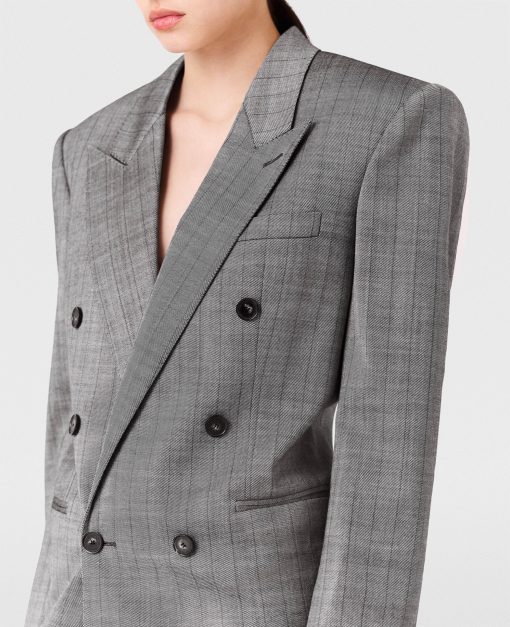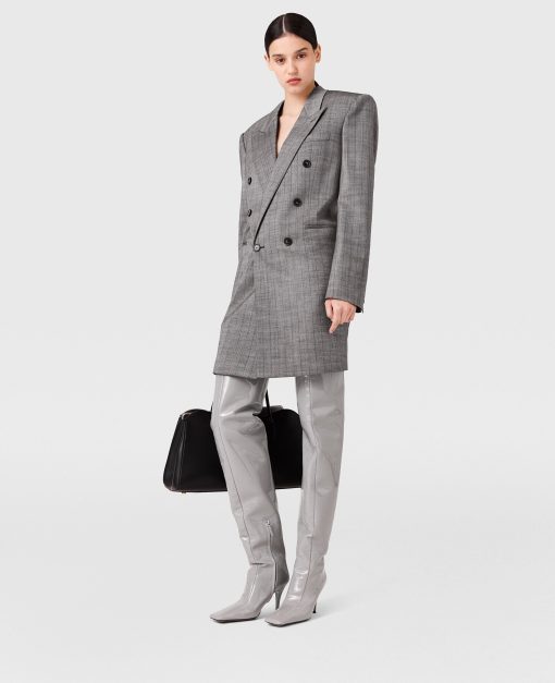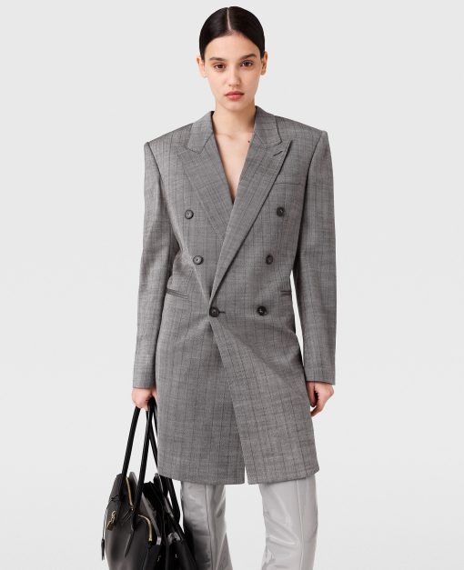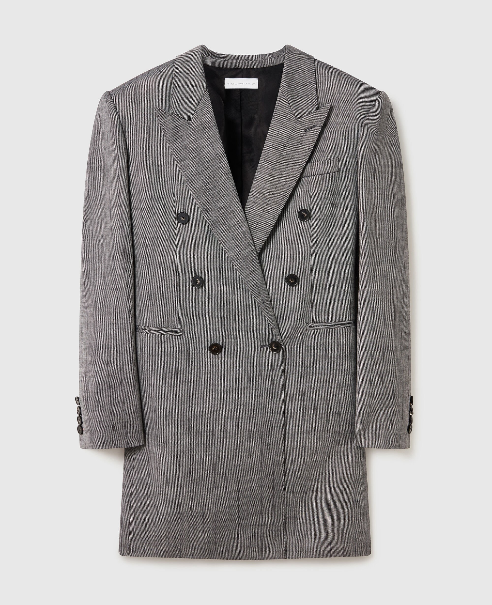 Savile Row tailoring is foundational to the Stella Corp wardrobe, embodying Stella McCartney’s signature masculine-yet-feminine perspective. For Winter 2025, this pinstripe blazer dress is immaculately constructed from fully traceable RWS-certified wool and cut to a double-breasted, thigh-skimming silhouette. Pair it with thigh-high boots for a head-to-toe runway look.
