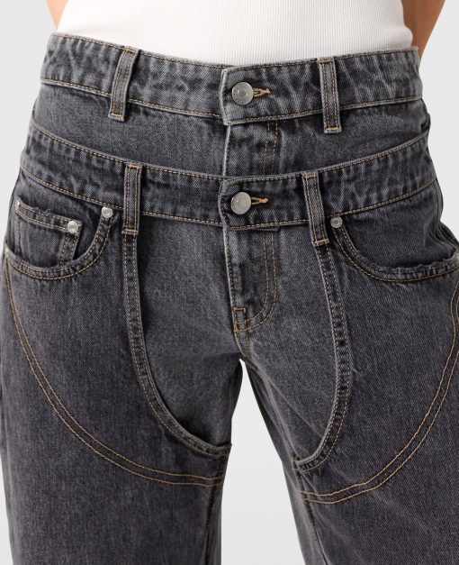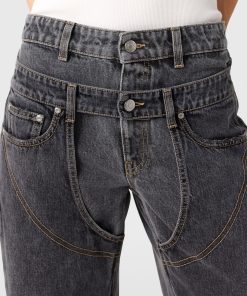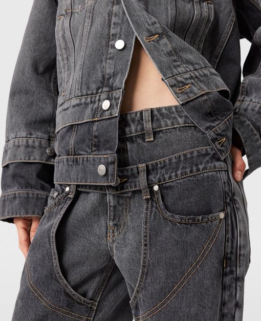 These organic cotton denim jeans reimagine iconic Stella McCartney chaps – cut to a mid-rise, straight-leg silhouette accented with two-tone panels, a double waistband and distressed details. Pair them with the coordinating jacket.