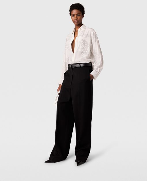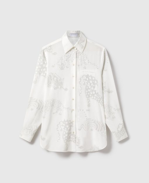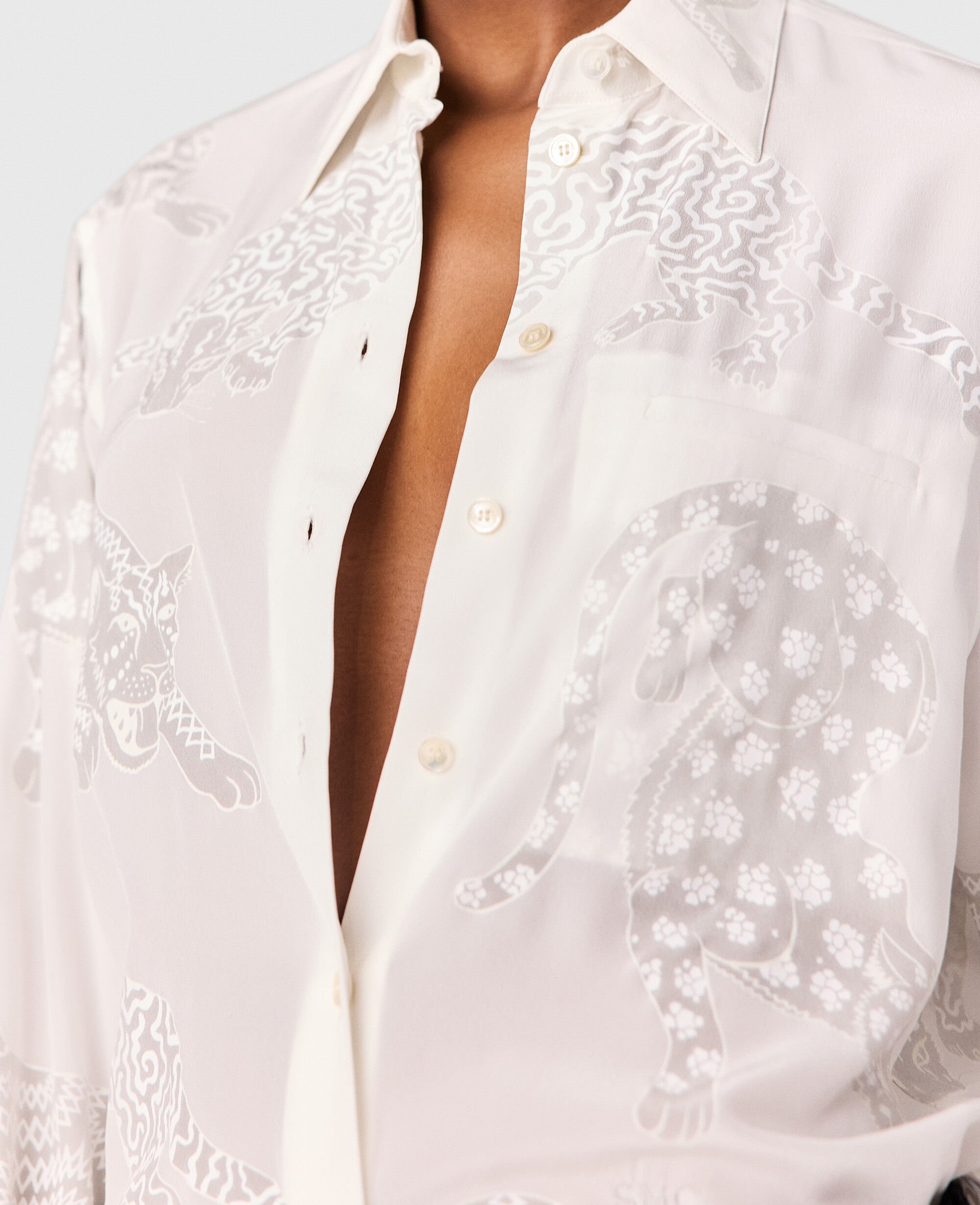 The daytime pajama shirt is reimagined seasonally by Stella McCartney, now in an all-over leopard print hand-painted in our atelier. Spun from fluid GOTS-certified organic silk, its oversized silhouette is topped with a classic collar and buttoned cuffs. Pair it with the coordinating pants.