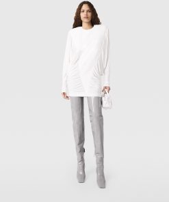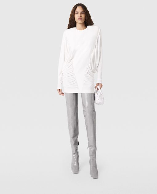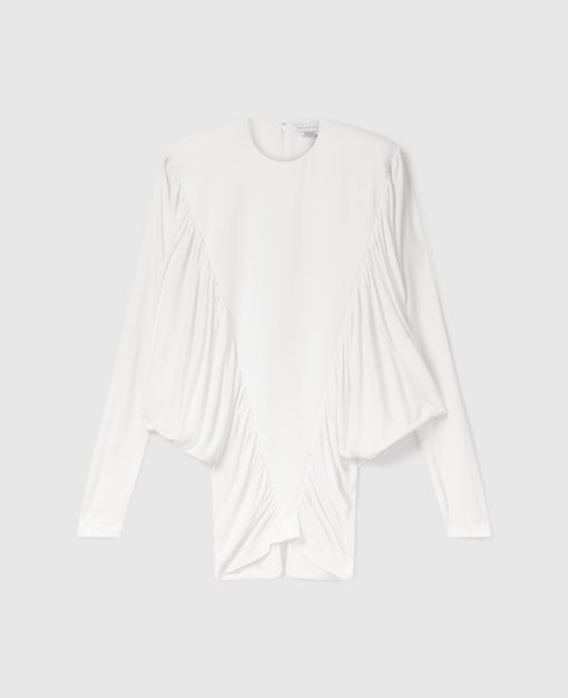 The key story behind Stella McCartney’s Winter 2025 runway collection was ‘Laptop to Lapdance’ – this dress is symbolic of that message. Crafted from forest-friendly viscose jersey, the mini is bolstered by shoulder pads and shaped by pleated paneling – a contrast of strength and sensuality.