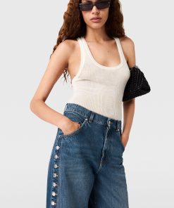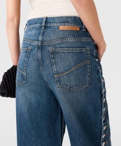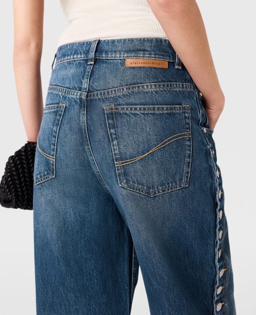 Denim is iconic to Stella McCartney, embodying our elevated yet effortless codes. Crafted from luxuriously weighted organic cotton, these voluminous jeans are cut to a mid-rise, straight-leg silhouette with a vintage wash and poppers studded along each leg. Pair yours with a slinky top and kitten heels.