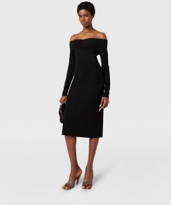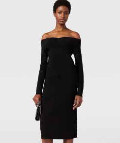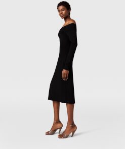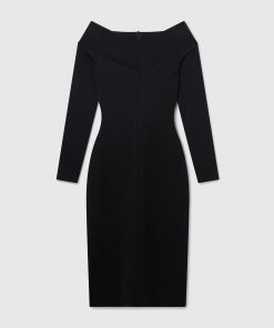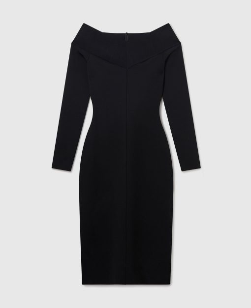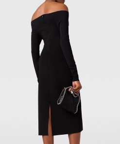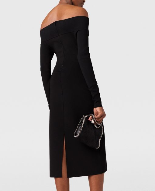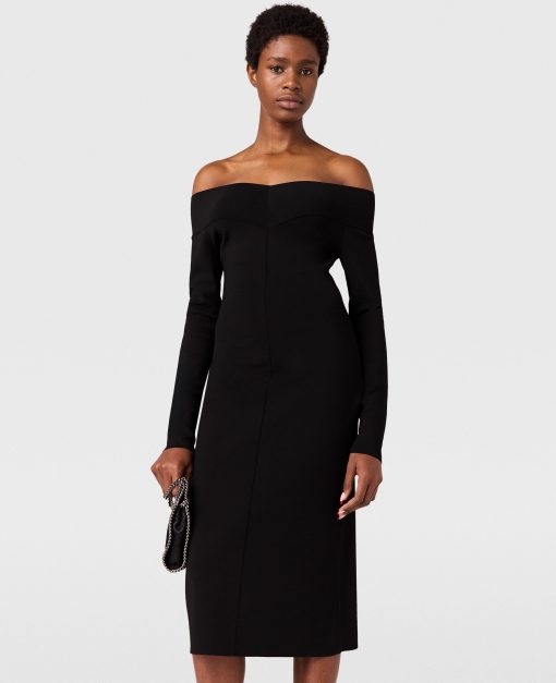 This slinky dress blends sensuality and silhouette in a classically Stella McCartney style. It caresses the body in sheer organic silk, perfectly sliced to an off-the-shoulder neckline exposing the décolletage. Effortlessly light and versatile, its long-sleeve, knee-length outline makes a sexy statement in any wardrobe.