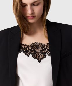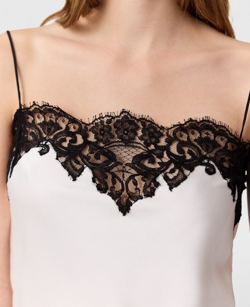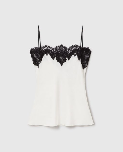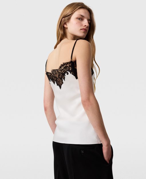 Stella McCartney Women’s Ready To Wear Sleeveless Lace Satin Top | Cream