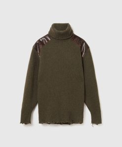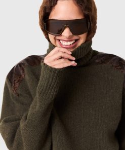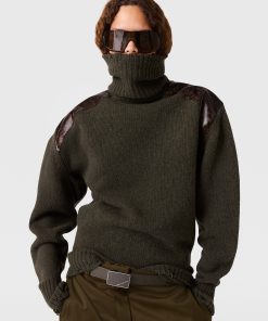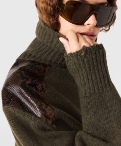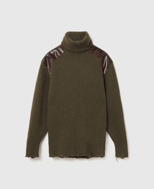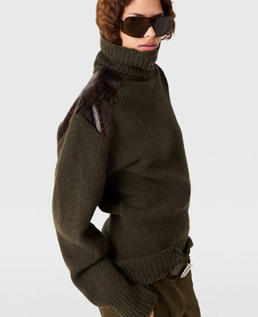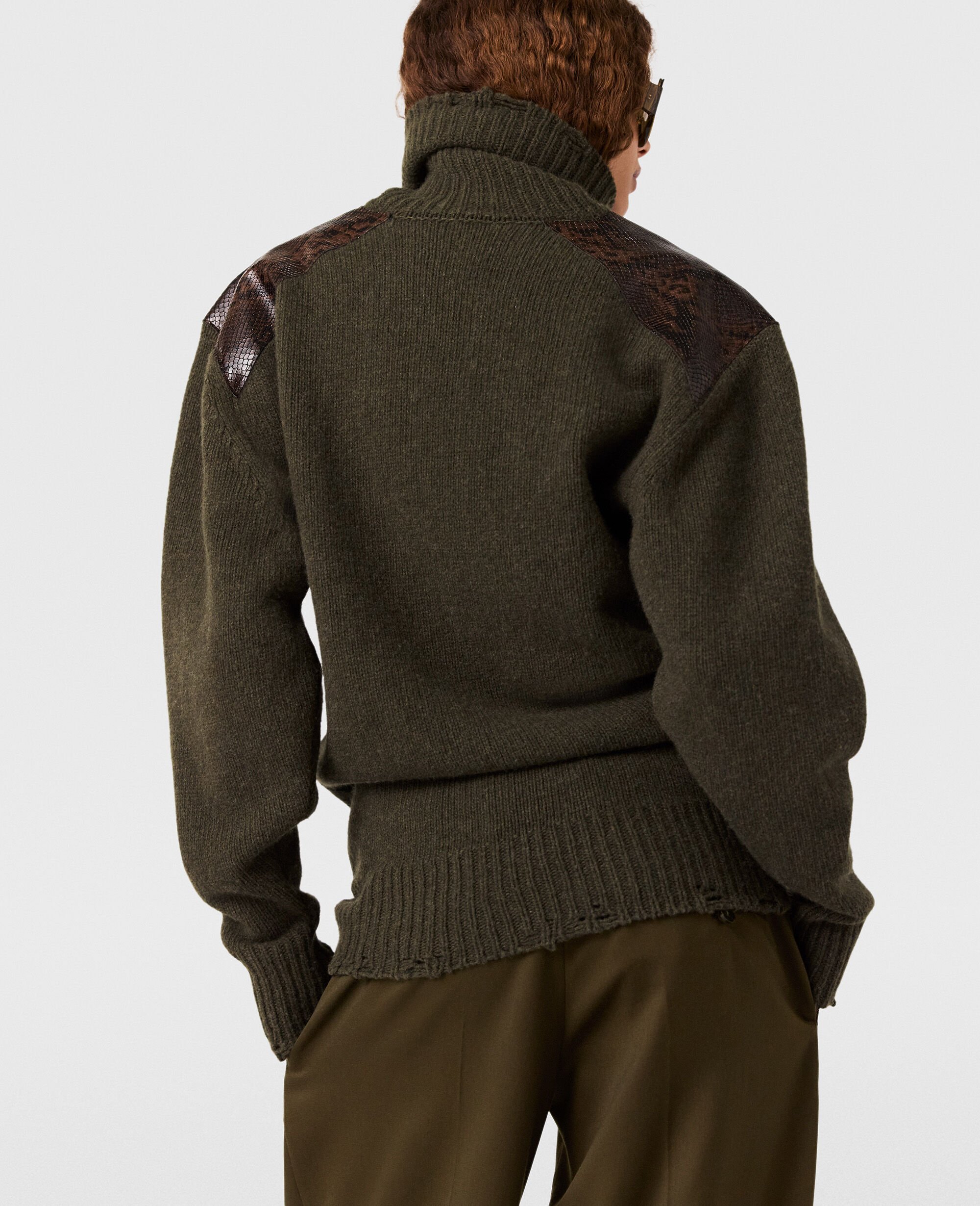 Spun from supremely soft RWS-certified virgin wool, this chunky, turtleneck sweater reimagines a classic silhouette through a Winter 2025 lens – each shoulder stitched with panels of YATAY M; a mycelium-based, vegan snakeskin alternative.