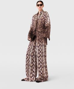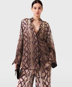 The daytime pajama set is reimagined seasonally by Stella McCartney, now in an all-over snake print. Spun from fluid forest-friendly viscose satin, the oversized silhouette of this shirt is topped with a pointed collar and tonal buttons. Pair it with the coordinating pants.