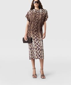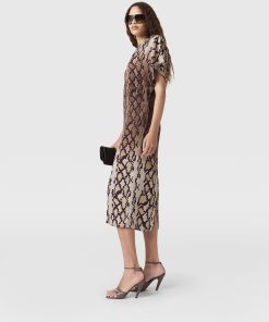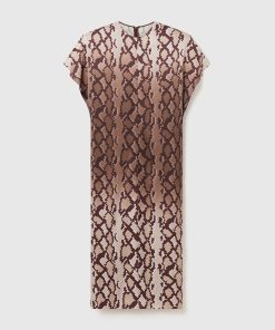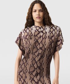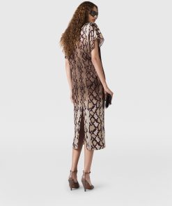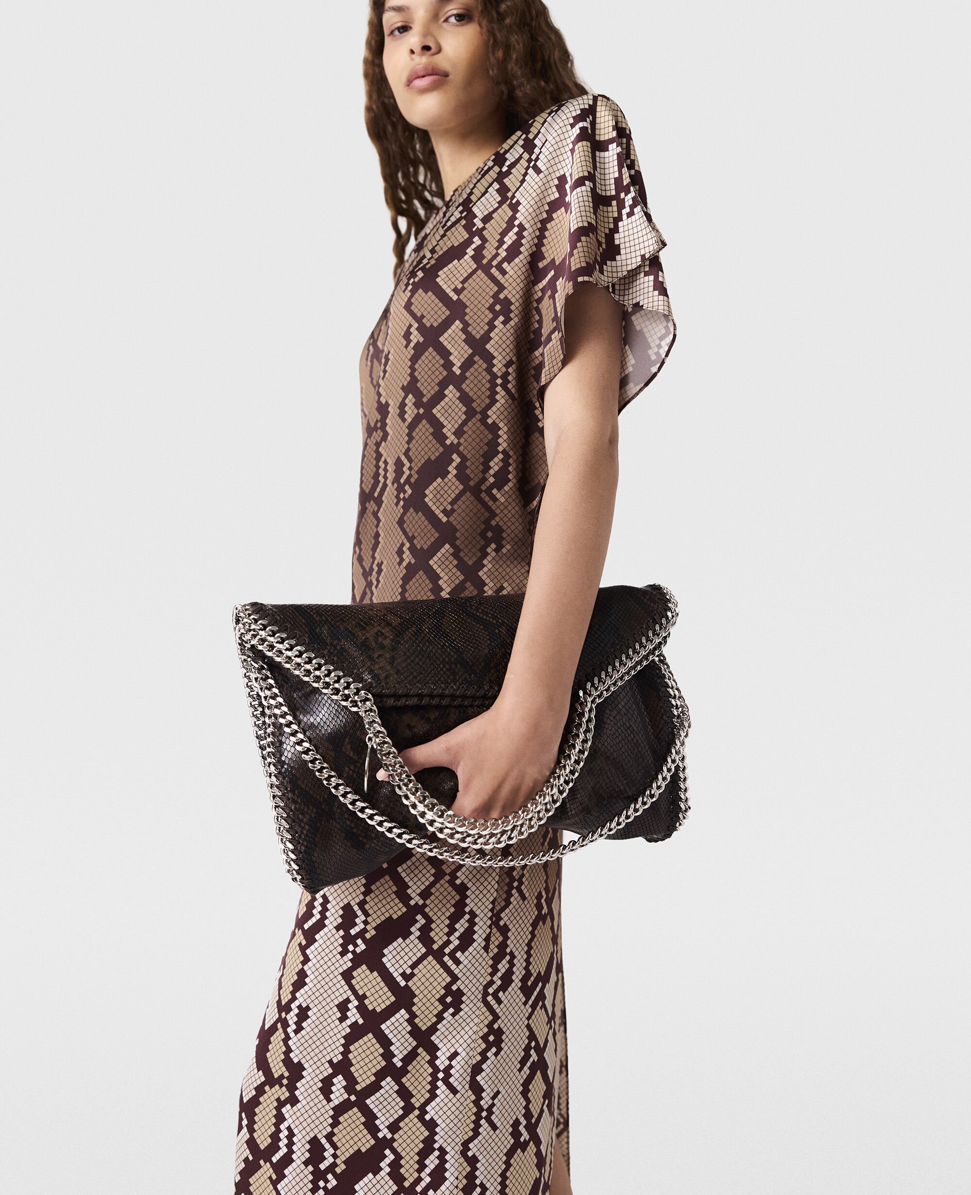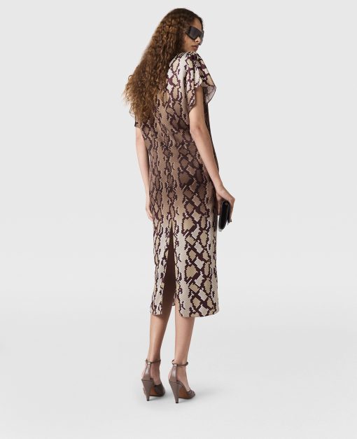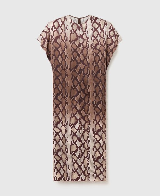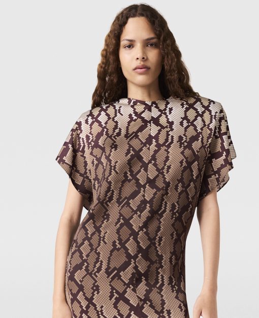 Spun from lustrous, forest-friendly viscose satin, this silky-smooth midi dress begins with strong shoulders and cap-sleeves. Cut to a calf-length hem, it’s swathed in a pixelated snake print from Stella McCartney’s Winter 2025 runway show.