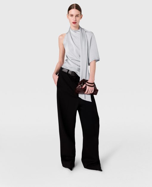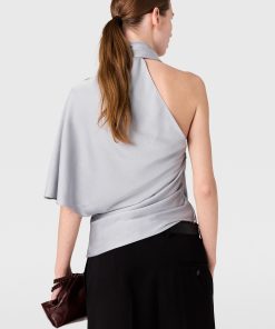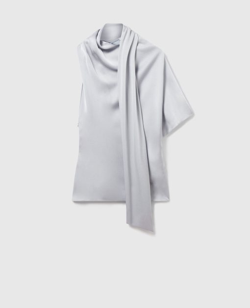 Stella McCartney Women’s Ready To Wear Tie Neck Asymmetric Top | Pearl Blue