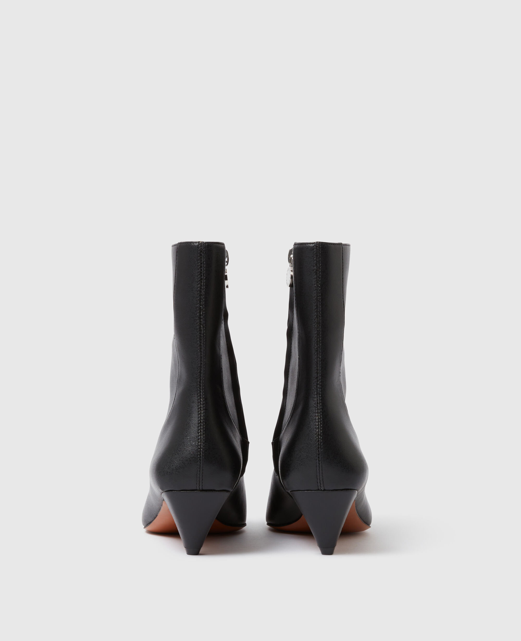 These sharp Stella Spur ankle boots are hand-sculpted from a brushed vegan alternative to animal leather. Their chiseled outline is intentionally carved to elevate any ensemble with an edge. Finished with an exaggerated pointed toe, they’re primed to peak out from iconic Stella McCartney denim jeans.