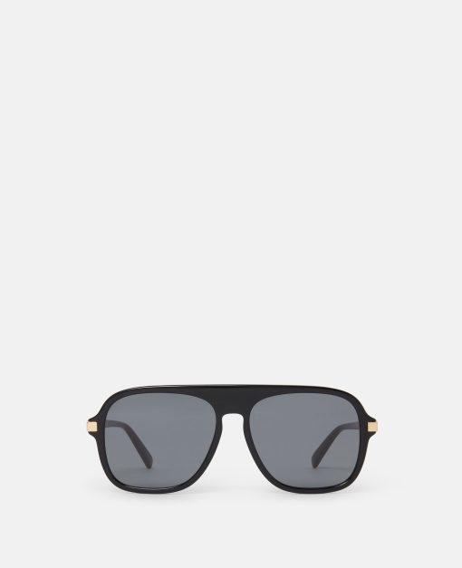 - Color: Glossy black and goldStyle: Straight-Edge Lens: Solid graySize: 57cm Net Weight: 50gLens Category: 3 Lens Transmittance: 16.53%Gold metal stripe with Stella McCartney moniker engraved on armsAll of our eyewear comes with a protective vegan case in embossed croc, recycled polyester cleaning cloth and leaflet crafted from recycled paper.